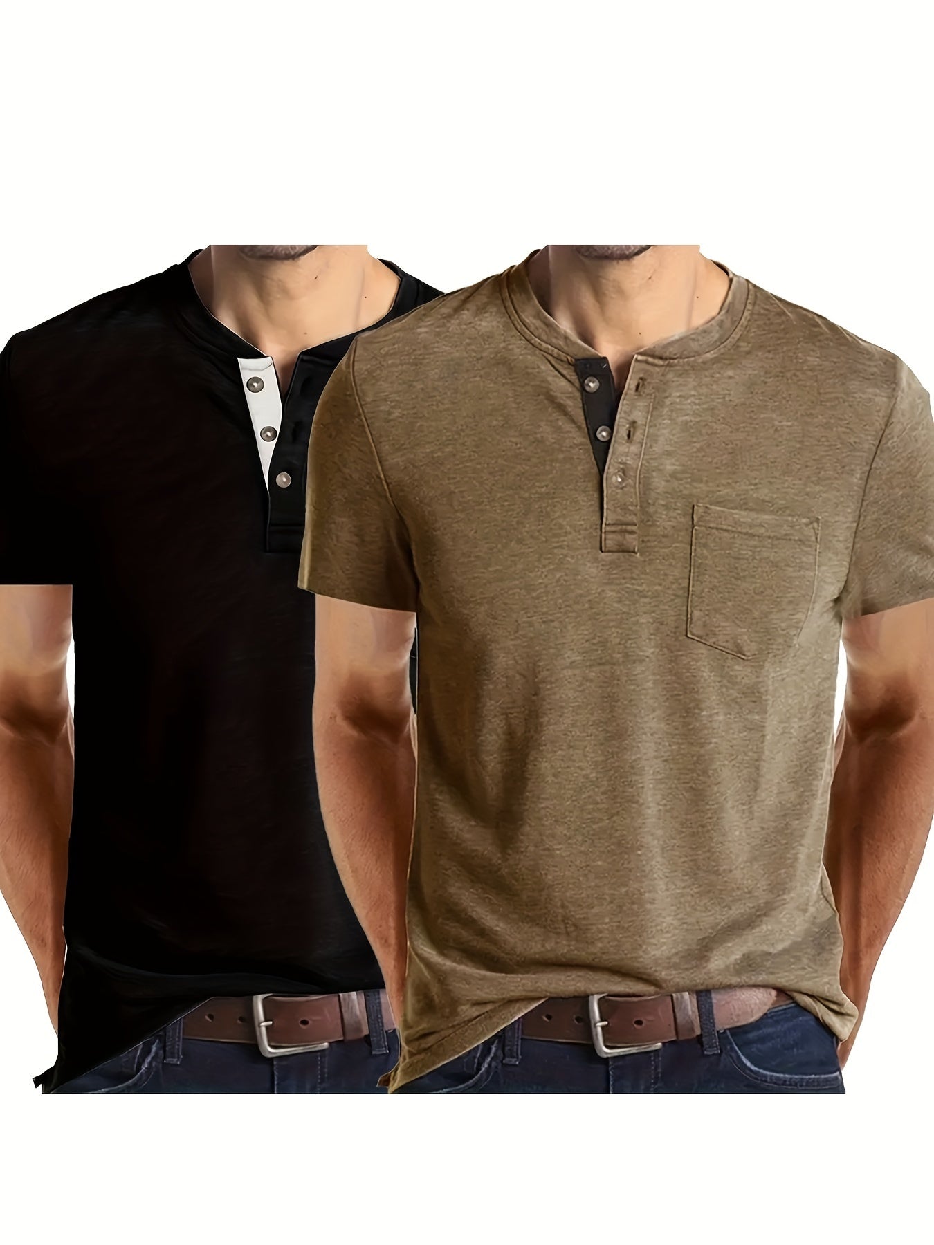 2 Stuks Heren Henley Shirt Voor de Zomer