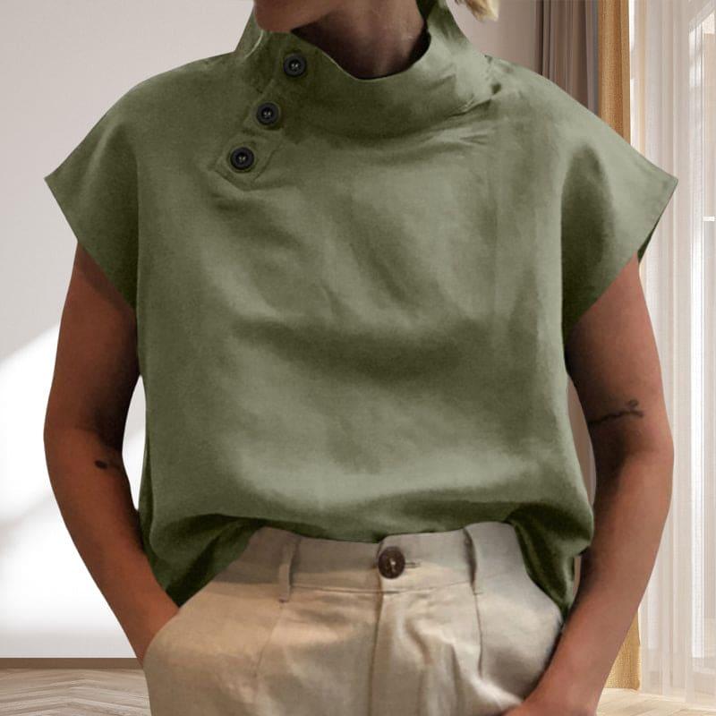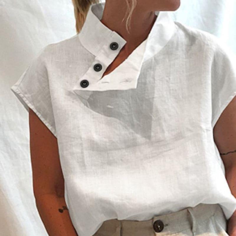 Aart | Bommetje van katoen en linnen met opstaande kraag en knoopsluiting