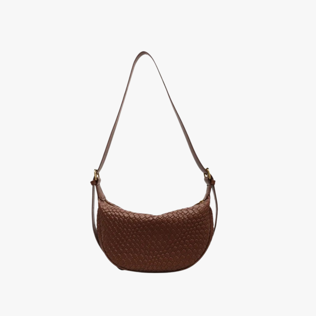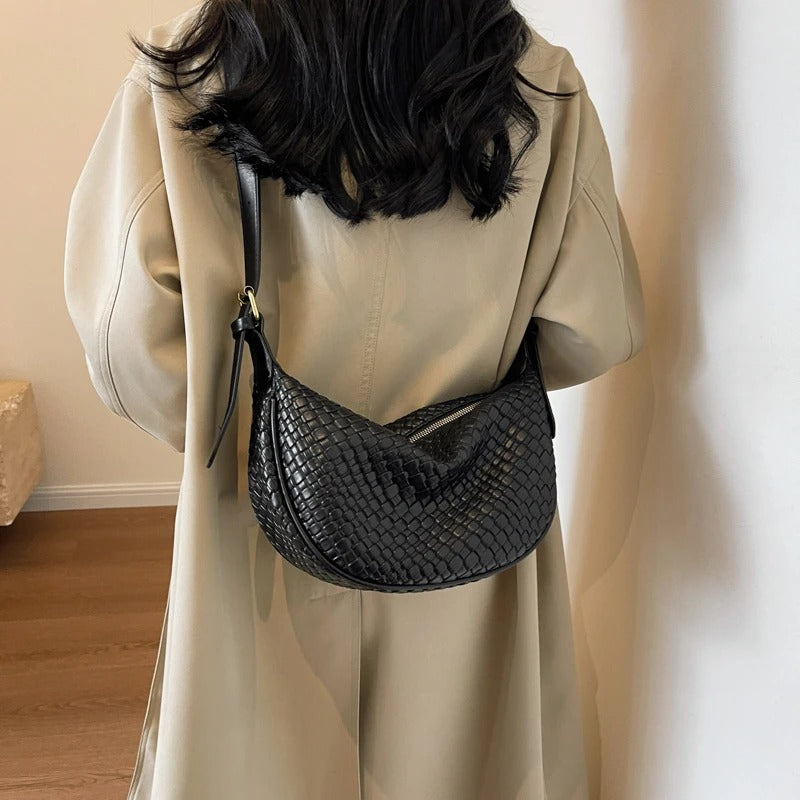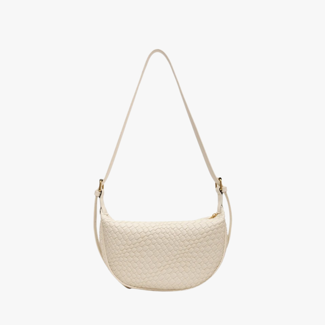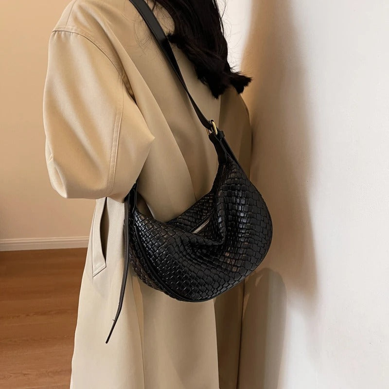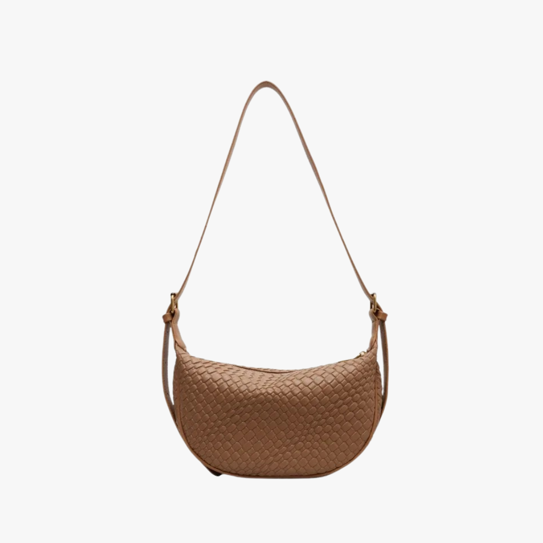 Omarm de WENDY Shoulder Bag van Berkenbosch Mode, een elegante tas met een klassiek halvemaanmotief.