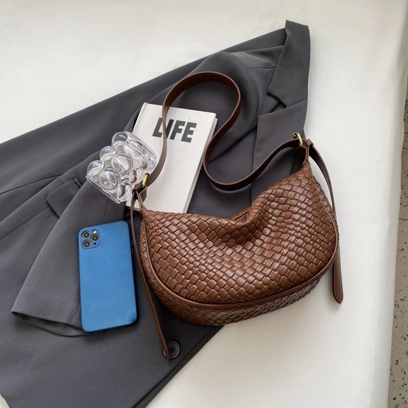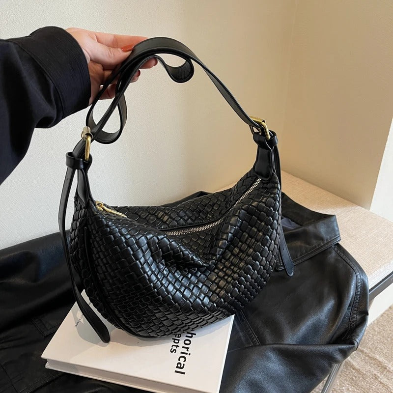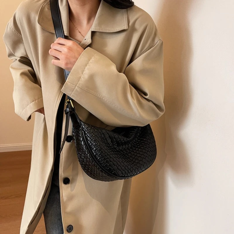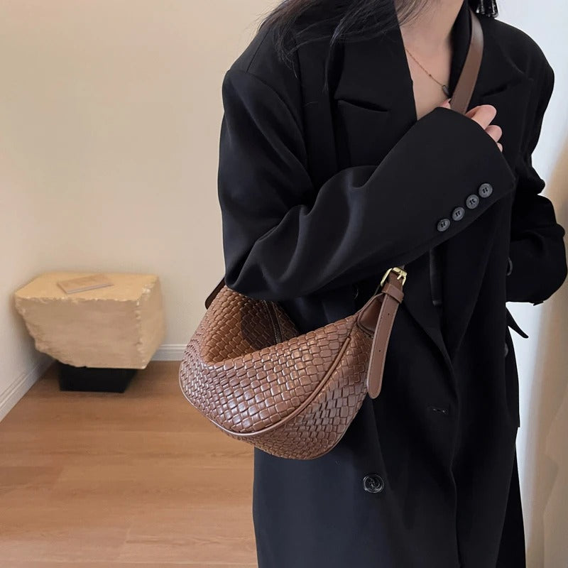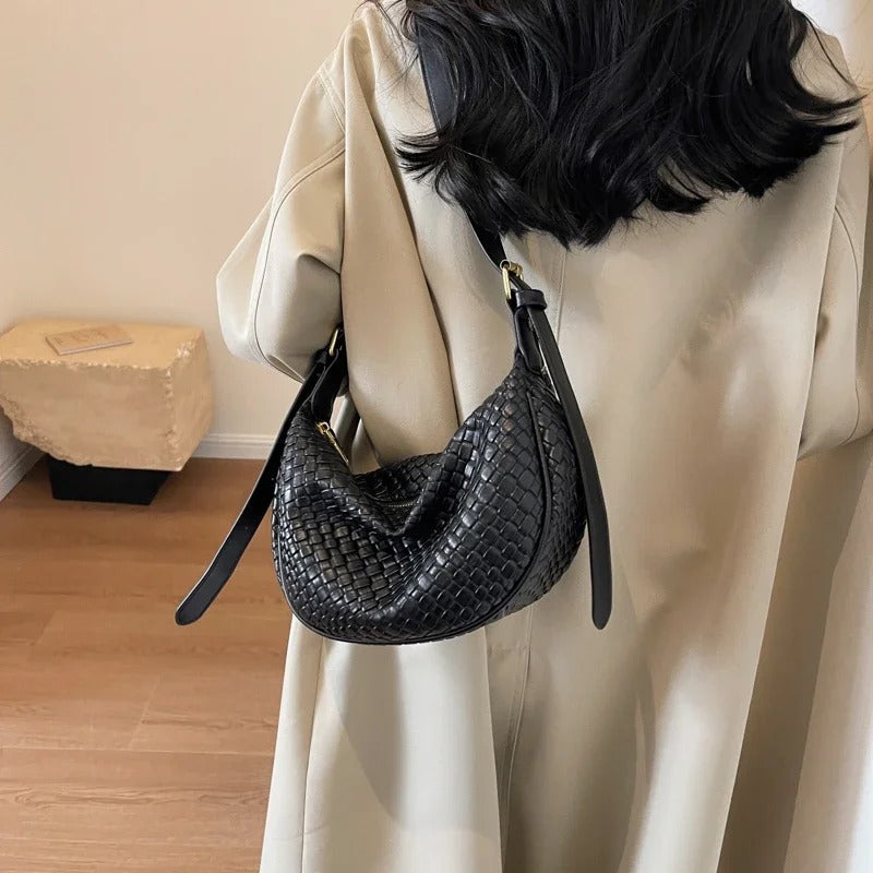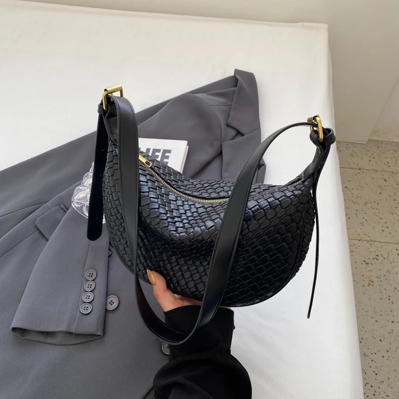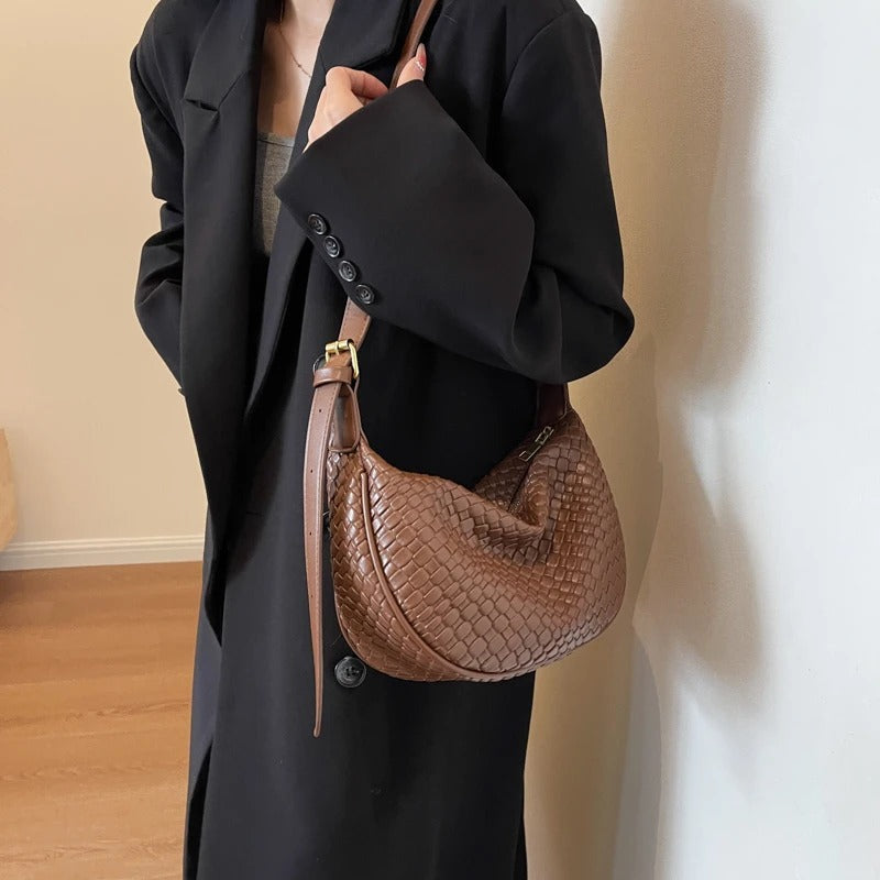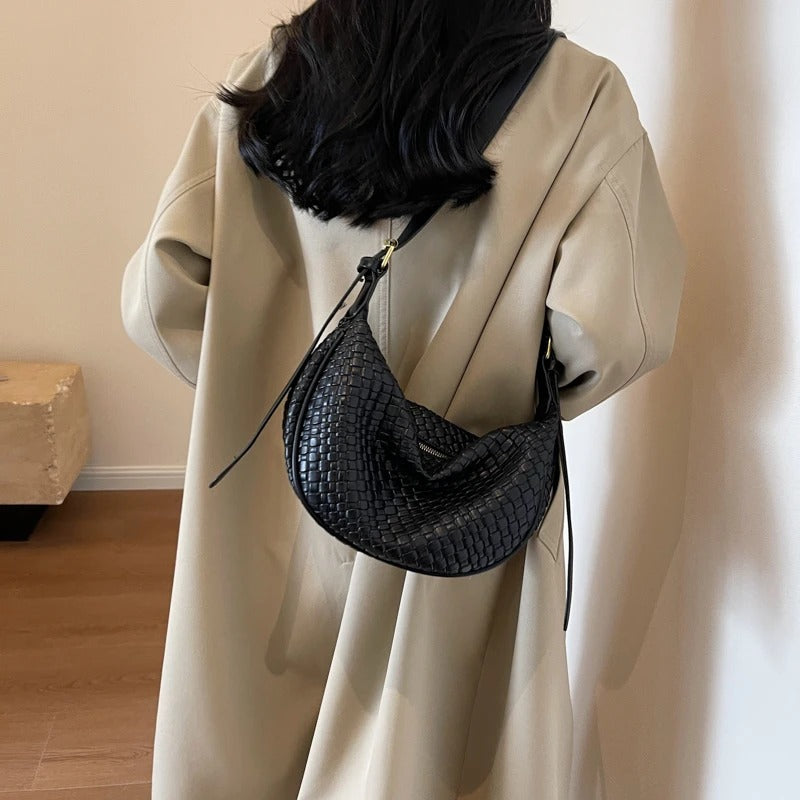 Omarm de WENDY Shoulder Bag van Berkenbosch Mode, een elegante tas met een klassiek halvemaanmotief.