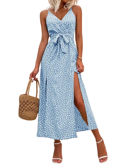 Wil je deze zomer opvallen met je stijl? De Floria zomerjurk is hier om je garderobe te redden! Gemaakt met een schattige bloemenprint en een flatterende V-hals, is deze mouwloze jurk perfect om je zomerse gloed te laten zien. De split voegt een vleugje aantrekkingskracht toe en maakt het gemakkelijk om je gracieus te bewegen.